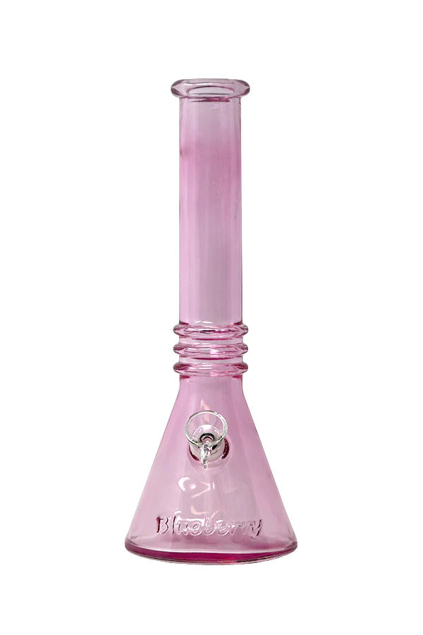 These bright additions to the Blueberry family have new connection fittings. Unlike most soft glass, this design has an angled neck that stabilizes the slide bowl. The rubber gasket’s only job now is to create that airtight seal needed, which was its intended function. The glass is thick with three rings for an easier grip and has an embossed Blueberry wordmark.